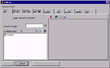 In this window EasyWebEditor lists all the pages found in the current site/hypertext. So, for the moment, we have only one page. As we want to link to a new page (that will be “Page 1”), we have to choose the last tab (”link to a new empty page”):