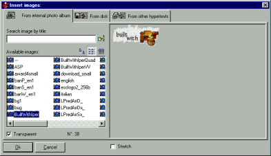 The image insertion window: note that you can quick reuse the images yet used in your current site / hypertext / catalog