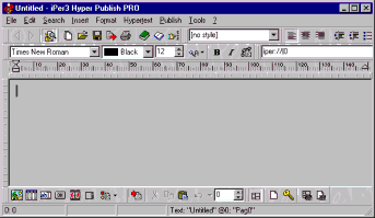 As you can see, the toolbars are very similar to MS Word ones. For the moment, just notice that the white cell at the bottom of the window shows the page number, “0”. As PaperKiller manages a whole page set, each page has a name and a number: the name is under the cell (”Untitled”).