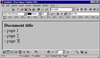 ...then we will place a link to the page “Page 1”. This page doesn’t exists, but we don’t need to create it directly (even if it is possible, with “File >Add new page...”), as a page creation can be done simultaneously with a link definition.
