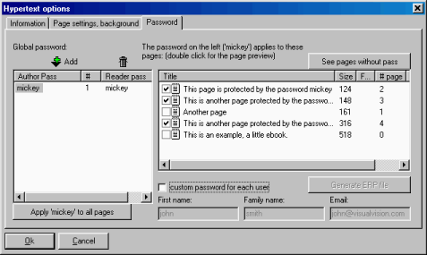 The password dialog. You can insert a list of global passwords for the ebook. Then you select a password on the left, and on the right you select the ebook pages to be associated with that password.