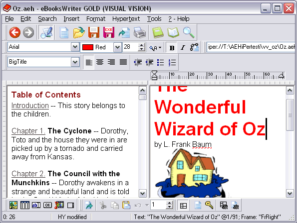 EbooksWriter’s user friendly environment manages multiple-page documents in a classical WYSIWYG editor. All pages are simultaneously available for editing, and are saved as a single document, instead of many scattered text and image files. This means you can archive and share a whole Ebook, for example, through one manageable file, as you might for plain text documents with your favorite Word Processor.