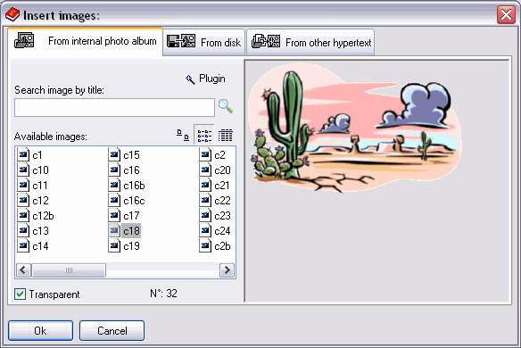 The image insertion window: note that you can quick reuse the images yet used in your current ebook/hypertext